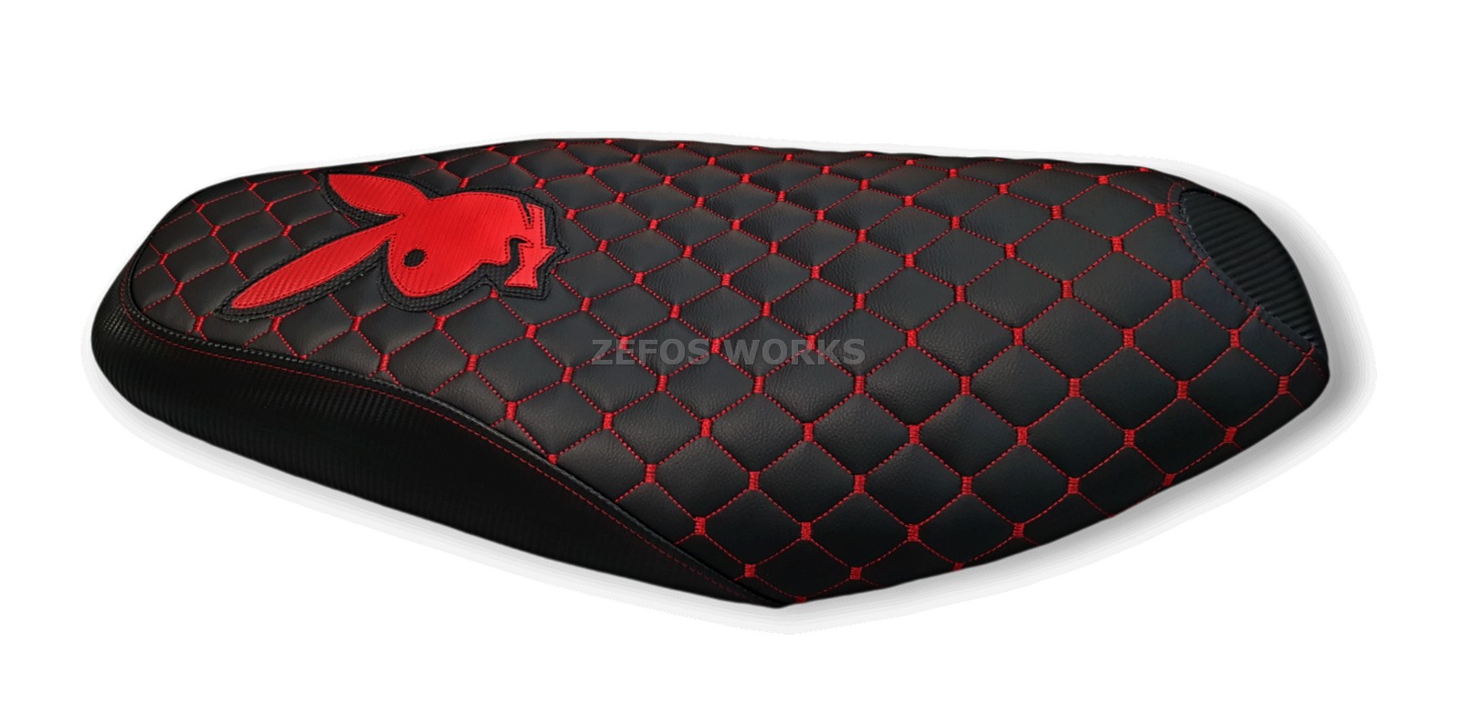 Καπιτονέ- μπακλαβαδωτό κάλυμμα σέλας με κόκκινες ραφές και λογότυπο playboy