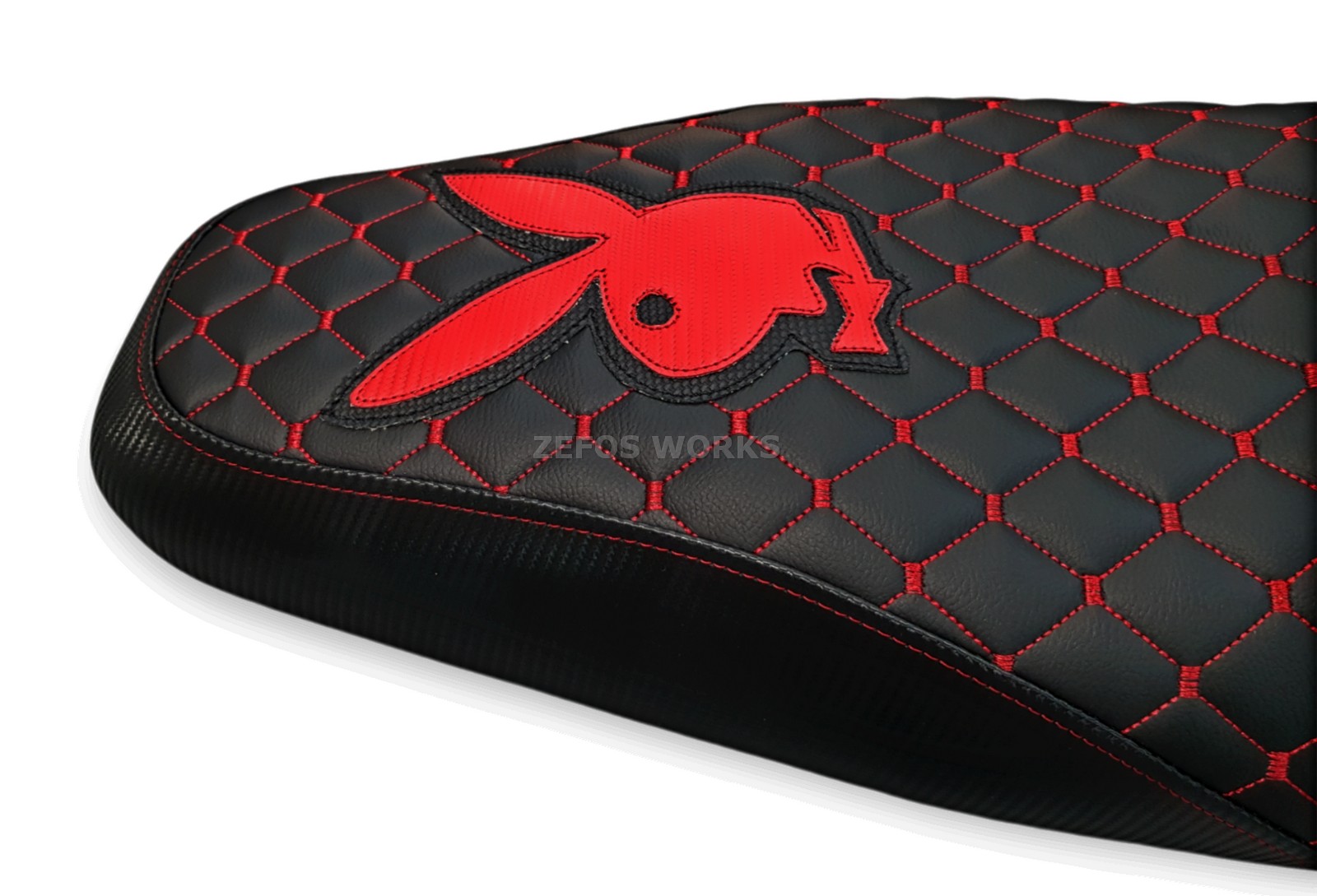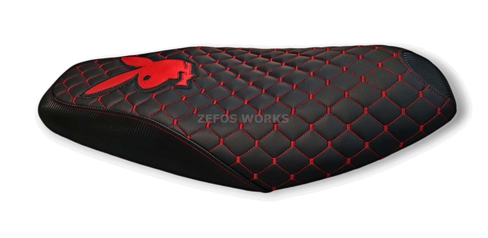 Καπιτονέ- μπακλαβαδωτό κάλυμμα σέλας με κόκκινες ραφές και λογότυπο playboy