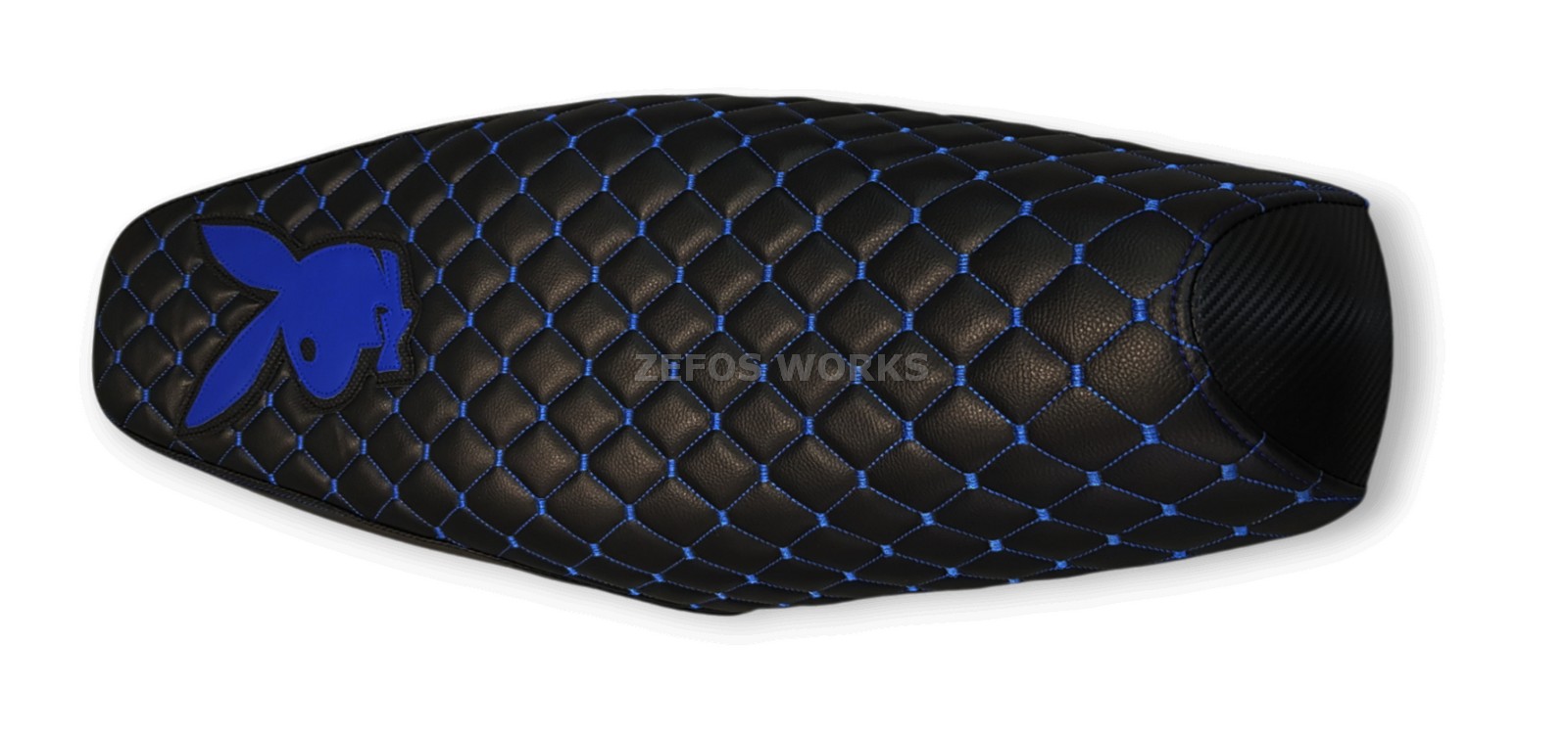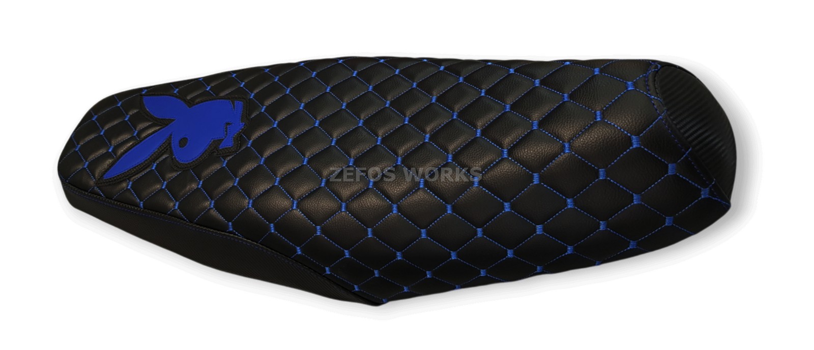 Καπιτονέ- μπακλαβαδωτό κάλυμμα σέλας με μπλε ραφές και λογότυπο playboy
