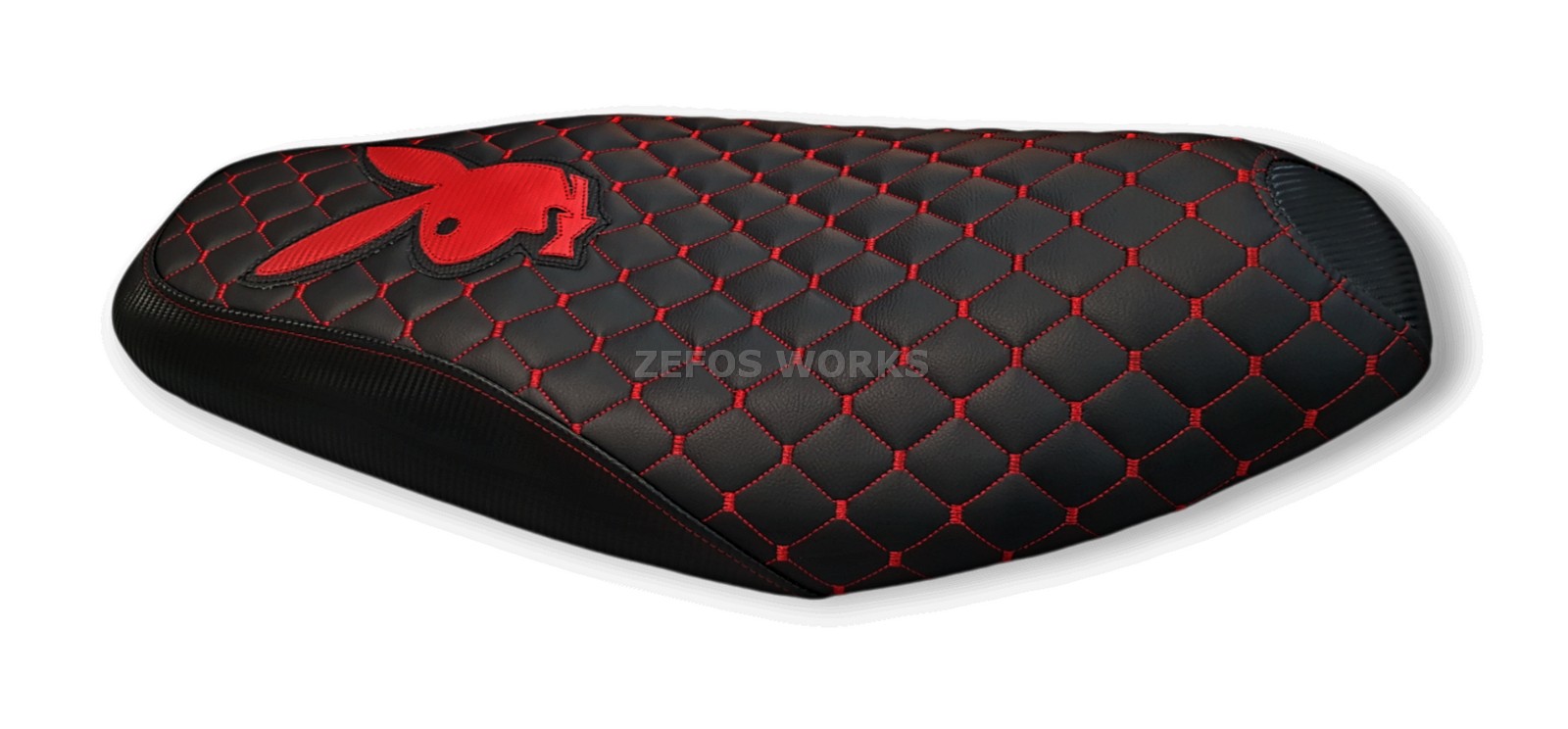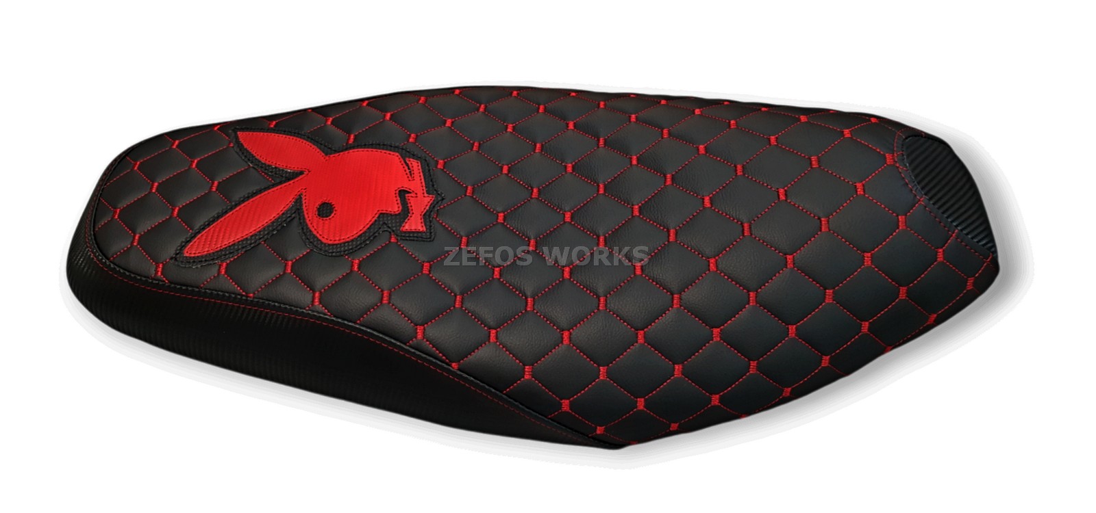 Καπιτονέ- μπακλαβαδωτό κάλυμμα σέλας με κόκκινες ραφές και λογότυπο playboy