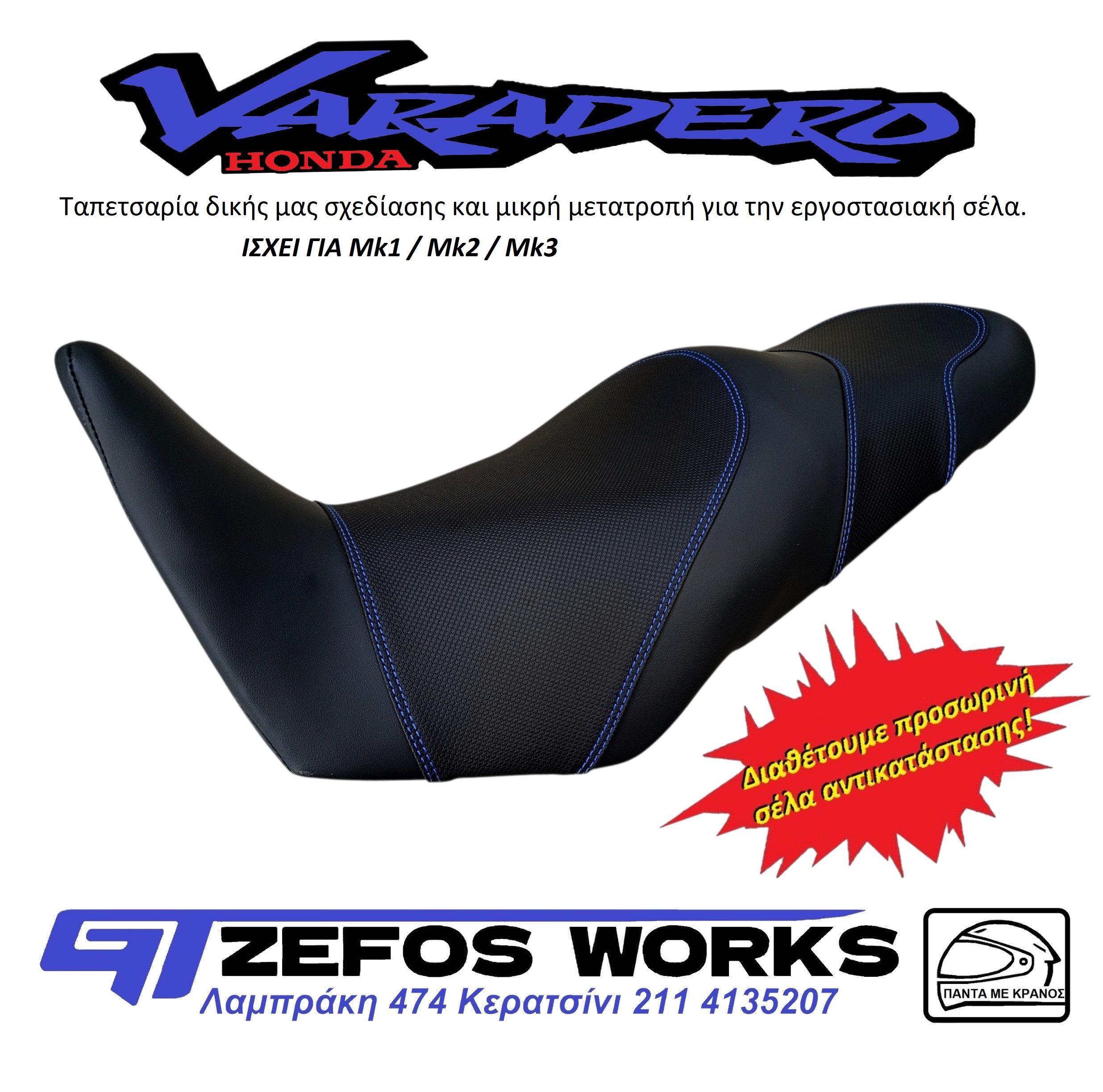 Αντιολισθητική ταπετσαρία και ελαφρά μετατροπή στο αφρώδες υλικο για την σέλα του honda varadero 1000. H ίδια μετατροπή και εμφάνιση ισχύει και για τις 3 γενιές xlv (mk1-2-3). H συγκεκριμένη ταπετσαρία δεν πωλείται ξεχωριστα και θα πρέπει να προσέλθει η σέλα σας στο εργαστήριο μας να γίνουν οι απαραίτητες μετατροπές και η τοποθέτηση.