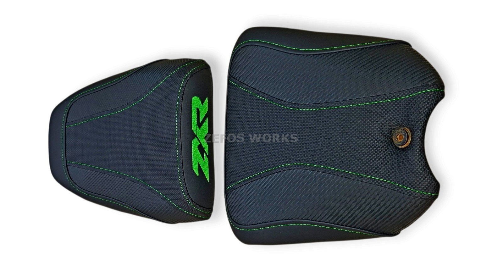 Αντιολισθητικό κάλυμμα σέλας με ανοιχτές πράσινες ραφές και λογότυπο